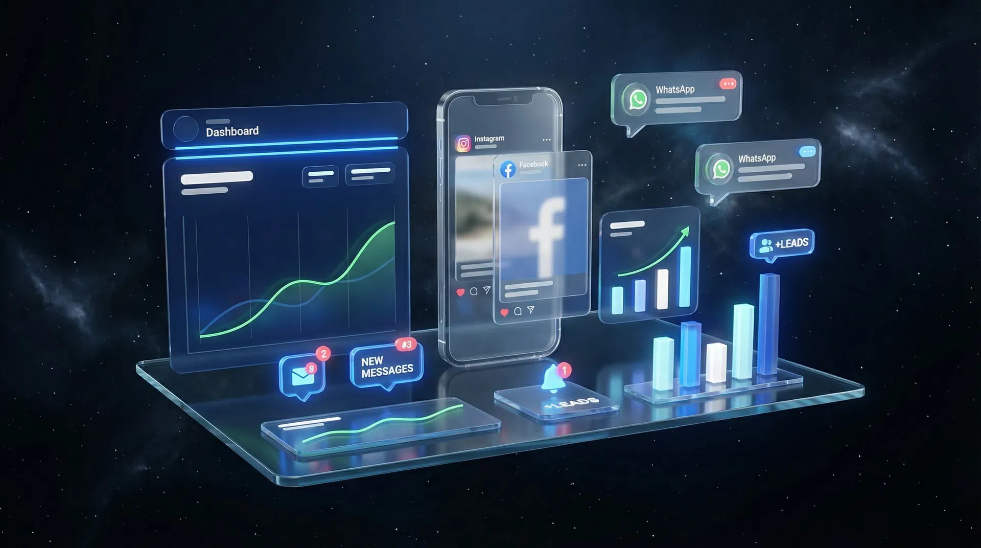 Hago que personas interesadas te escriban por WhatsApp, Instagram, Facebook o Messenger. Cada mensaje es un potencial cliente que ya quiere saber más de vos.